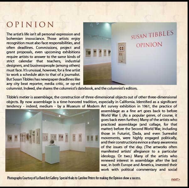 Link to About the artist Susan Tibbles page Link to Susan Tibbles' Home Page Link to Illustration Page One Link to Susan Tibbles Home Page Link to fine art section of Susan Tibbles' Art work Link to Opion Section - Page under construction Link to Selected exhibits page Link to Contact Page link to Peter Frank forwark about Susan Tibbles
